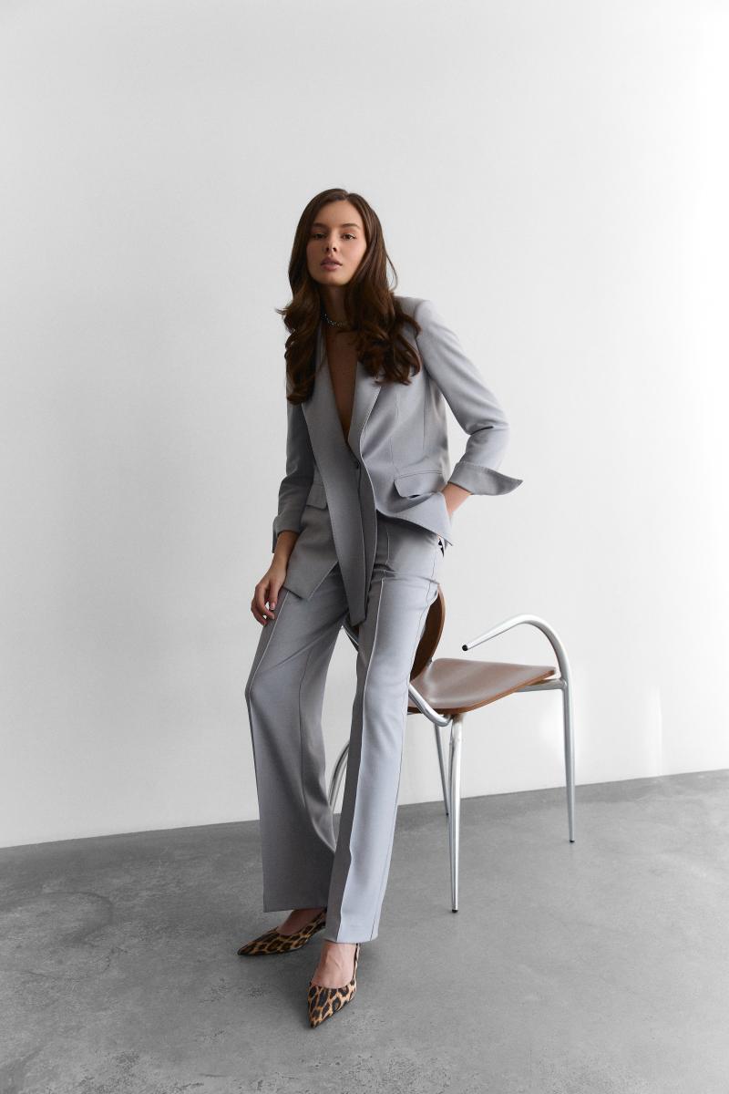Женский синий жакет Arber полуприлегающего силуэта из инновационной ткани с добавлением вискозы и эластина, прекрасно сидит на фигуре, не сковывает движений. Однобортная модель с застежкой на пуговицы с прямыми лацканами, с двумя карманами с клапаном. Жакет можно сочетать с трикотажным гольфом или рубашками.